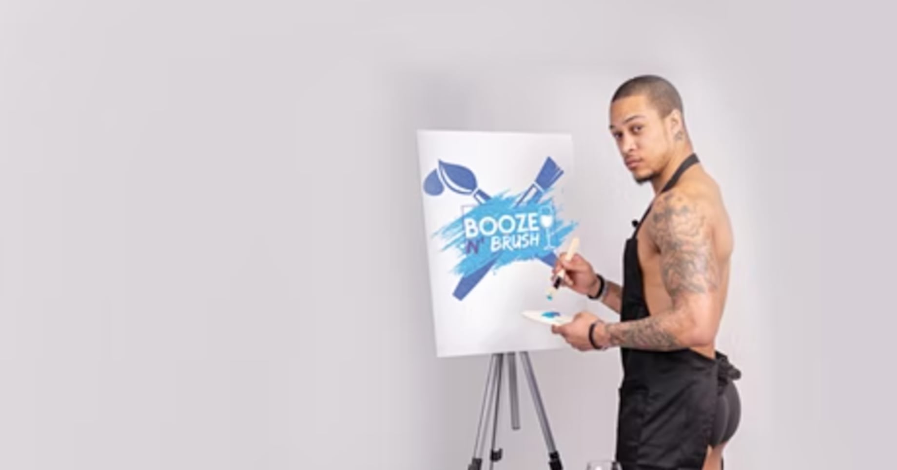 Unlike traditional nude models with softer features, the Booze & Brush men appear more (ahem) stripperlike with personalities attuned to interacting with a crowd.